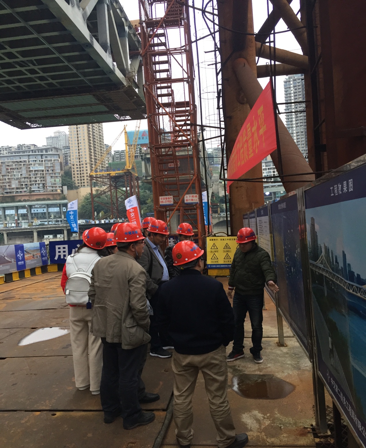 5日下午,考察組一行到達重慶大學,重慶大學土木工程學院橋梁與道路工程研究所所長狄謹教授親臨接待,他現(xiàn)場介紹了重慶大學土木工程學院的歷史以及主要研究領域,并帶領考察團實地參觀了重慶大學重點實驗室及曾家?guī)r大橋在建工地,雙方就橋梁的病害防治、試驗檢測及施工監(jiān)控等方面展開了深入細致的探討與交流。