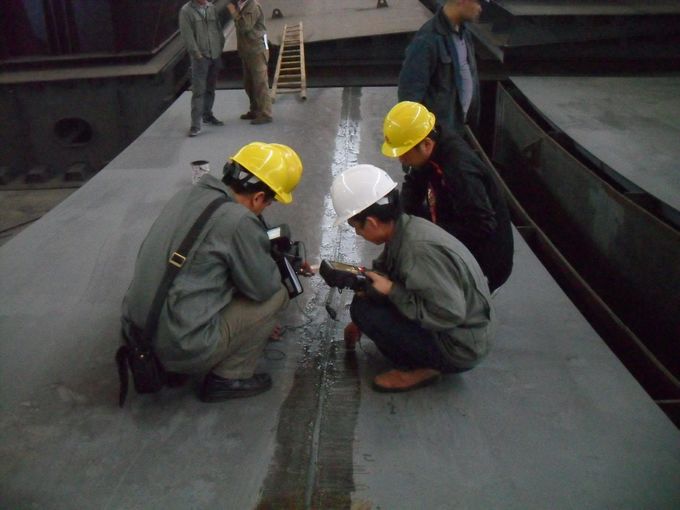為了加強(qiáng)鋼結(jié)構(gòu)制作的過程檢驗(yàn)和質(zhì)量控制,確保施工質(zhì)量,服務(wù)于工程現(xiàn)場,2011年5月10日~12日,寧波市交通建設(shè)工程試驗(yàn)檢測中心派員赴江蘇鋼箱梁制作單位對寧波穿好至好思房公路工程預(yù)制鋼箱梁進(jìn)行廠內(nèi)焊縫探傷檢測。