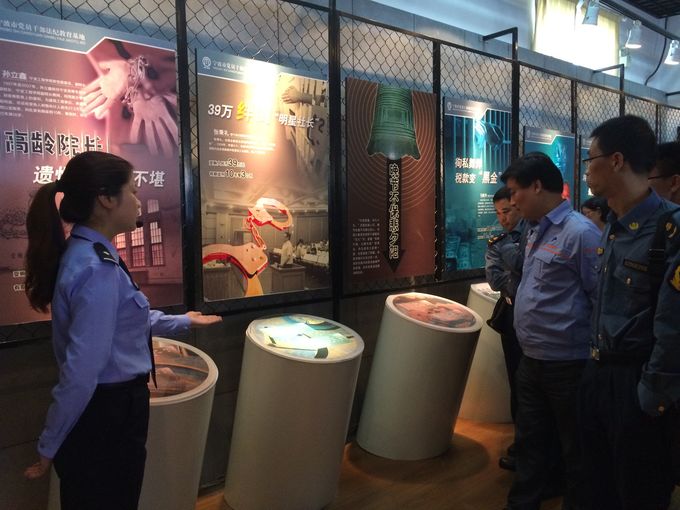 全體人員在講解員的帶領(lǐng)下參觀了警示教育展廳,觀看了監(jiān)獄改造紀實片-《囚犯的一日》,并通過短片聽取了兩名因貪污受賄服刑人員的現(xiàn)身說法。發(fā)人深省的圖片,真實經(jīng)歷的講述,無一不讓所有參觀人員深刻感受到“天堂”與“地獄”僅僅一步之差,一時信念動搖換來的是將是失去人生自由的慘痛代價。