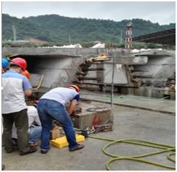 2015年7月8日,公司相關(guān)檢測人員在生產(chǎn)廠家技術(shù)人員的陪同下,在38省道寧海橋頭胡至深甽段改建工程上海城建隧道股份公司梁板預(yù)制場對我公司新引進的張拉應(yīng)力檢測儀和孔道灌漿密實度質(zhì)量檢測儀進行了首次現(xiàn)場檢測使用,檢測效果良好。