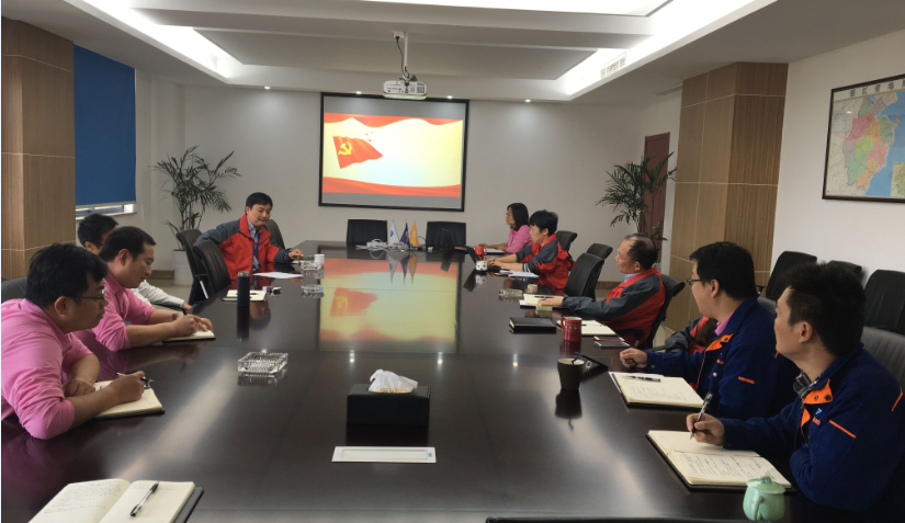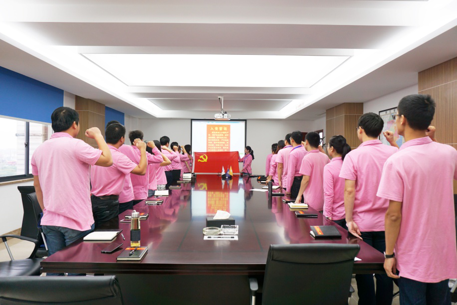 大會開幕當天,公司全體黨員佩戴黨徽,齊聚會議室,舉起右拳,面向鮮紅的黨旗,一起莊嚴地重溫入黨誓詞,以昂揚的姿態(tài)和飽滿的熱情聆聽十九大報告,學習十九大精神。