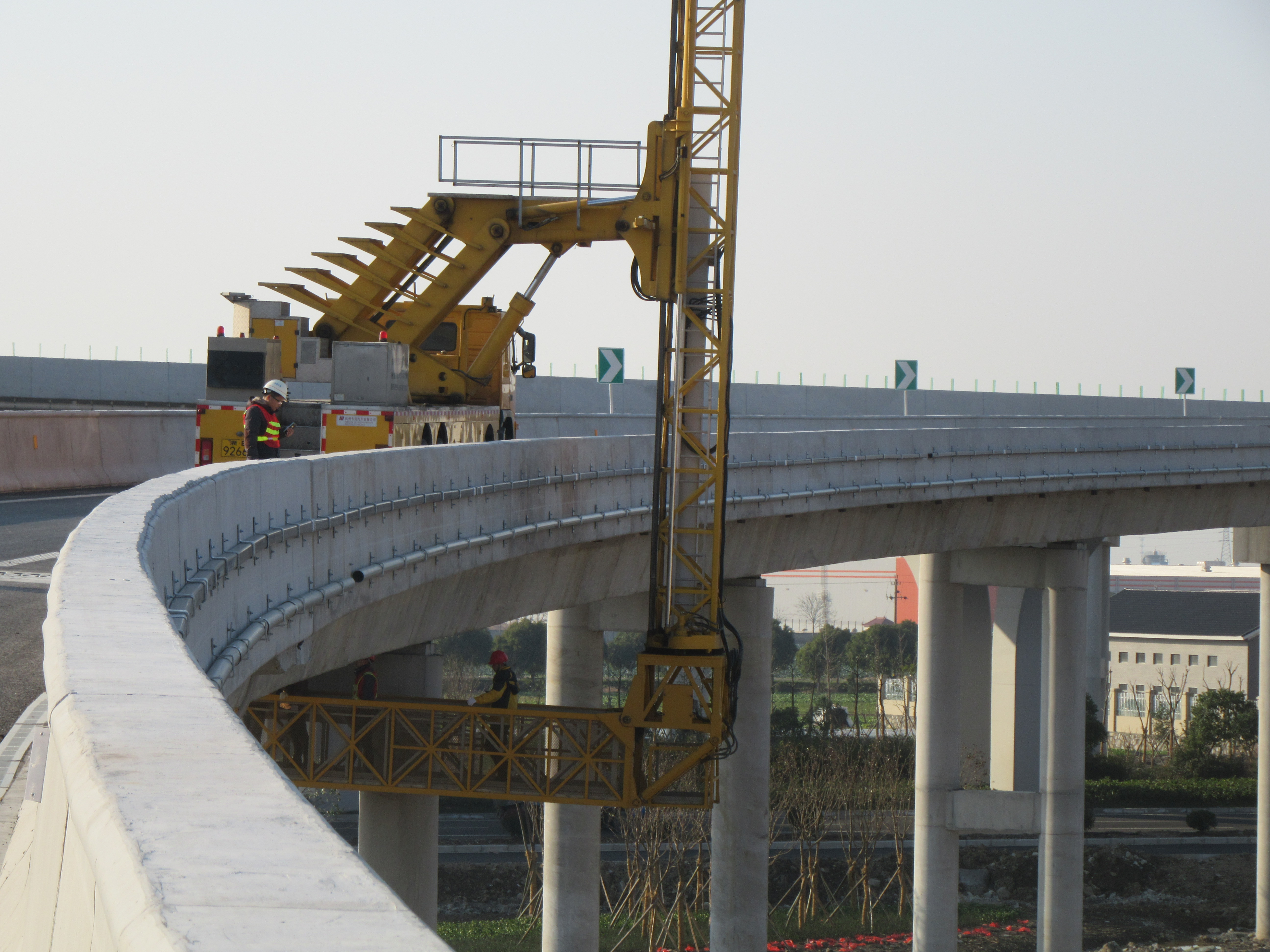 項目按高速公路標準建設,設計速度100km/h,雙向4車道,全線高架,橋梁寬度25.5m,設計汽車荷載為公路-Ⅰ級。本次交工檢測分實體檢測、外觀檢測、荷載試驗三部分,檢測范圍包括17.9公里主線高架及馬渚、陽明、泗門三處互通的橋梁、路基、路面、交安、房建及環(huán)保工程。